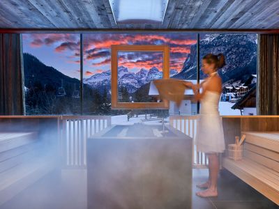A sauna has plenty of benefits, as it relaxes muscles after a day of skiing in the Dolomites, a hike or a cycling tour through the mountains of Alta Badia and South Tyrol.